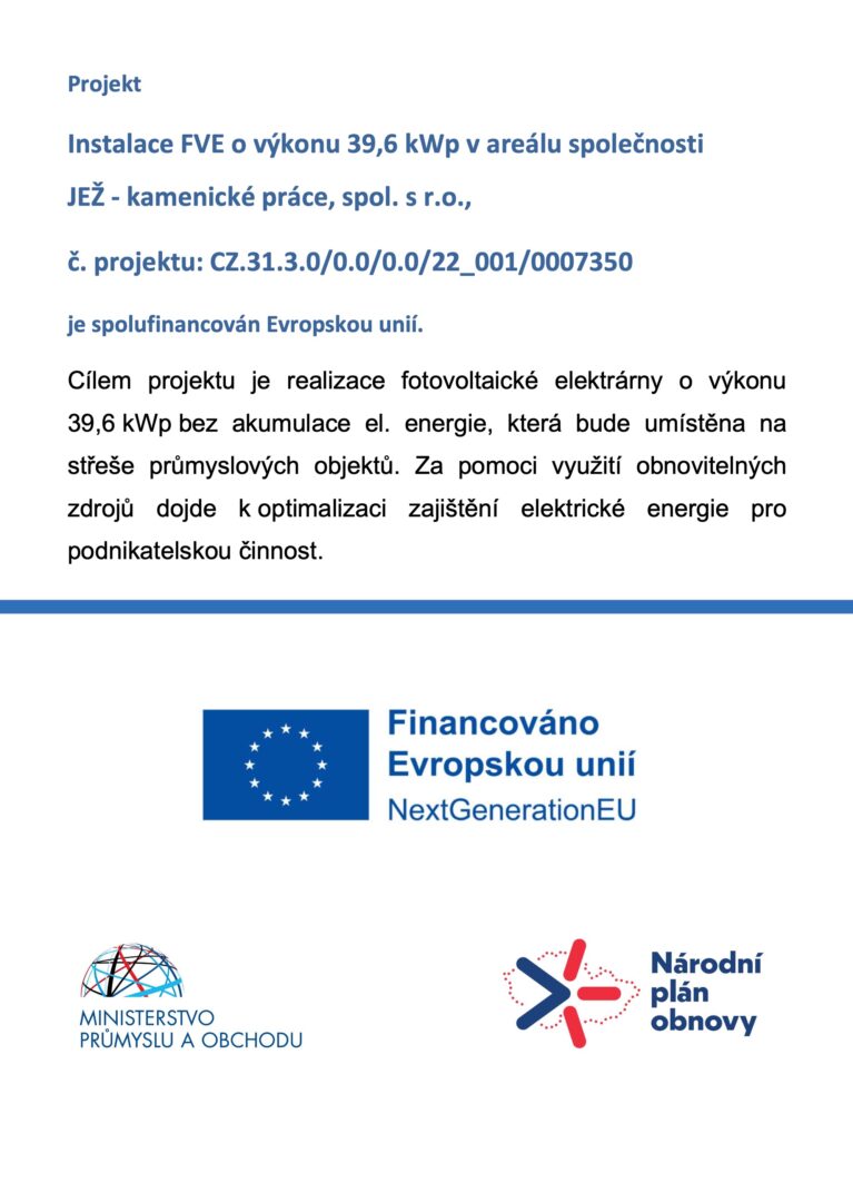 Instalace FVE o výkonu 39,6 kWp v areálu společnosti JEŽ – kamenické práce, spol. s r.o.